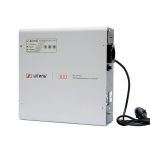 SW300L оснащен встроенным зарядным устройством с током заряда 6 А, благодаря чему возможно подключение внешнего аккумулятора большой емкости (от 17 до 250 Ач). Он сможет обеспечить от 18 мин до 9,5 ч автономной работы нагрузки (при 100% загрузке ИБП). Аккумуляторная батарея, в зависимости от ёмкости, размещается во внешнем напольном стеллаже.