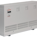 Стабилизатор выполнен в виде подвесного моноблока с табло индикации и автоматическим выключателем сети на передней панели и клеммными колодками для подключения сетевого и нагрузочного кабелей на задней.