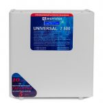 UNIVERSAL 7500 ‒ электронный стабилизатор на основе 36-ступенчатого автотрансформатора с тиристорным управлением. Обеспечивает точность стабилизации на уровне ± 1,5 % и рассчитан на непрерывную работу в промышленных и бытовых сетях электроснабжения, с номинальным фазным напряжением 220 вольт, частотой 50 герц.